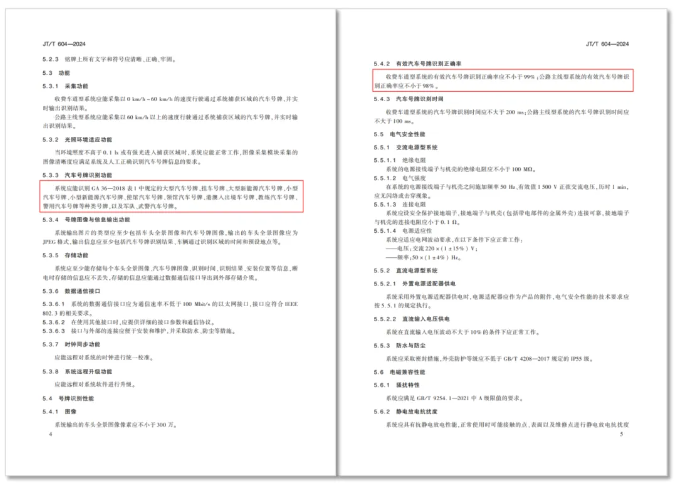 針對汽車號牌視頻自動識別系統(tǒng)的應(yīng)用現(xiàn)狀和發(fā)展趨勢,《汽車號牌視頻自動識別系統(tǒng)》行業(yè)標準對汽車號牌識別功能(新能源汽車號牌、雙層號牌、港澳車牌等)、號牌識別正確率(收費車道型系統(tǒng)的有效汽車號牌識別正確率應(yīng)不小于99%;公路主線型系統(tǒng)的有效汽車號牌識別正確率應(yīng)不小于98%)等重要功能和性能做了變更,助力公路收費管理更精確!