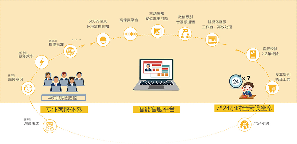 專業客服服務體系+智能客服平臺+7*24全天候坐席